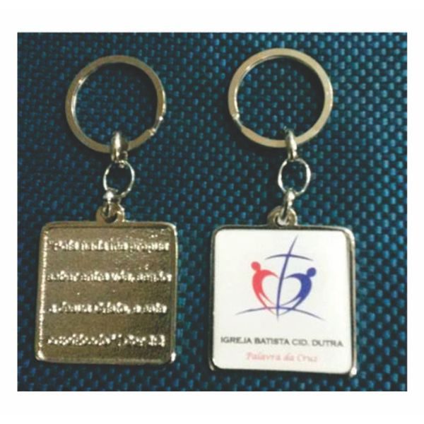 Chaveiros “Igreja Batista” em metal com etiqueta resinada.