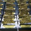 Troféu recortado “MEDALHA COMEMORATIVA 19 DE FEVEREIRO” confeccionado em metal acabamento ouro velho e plaquinha personalizada.